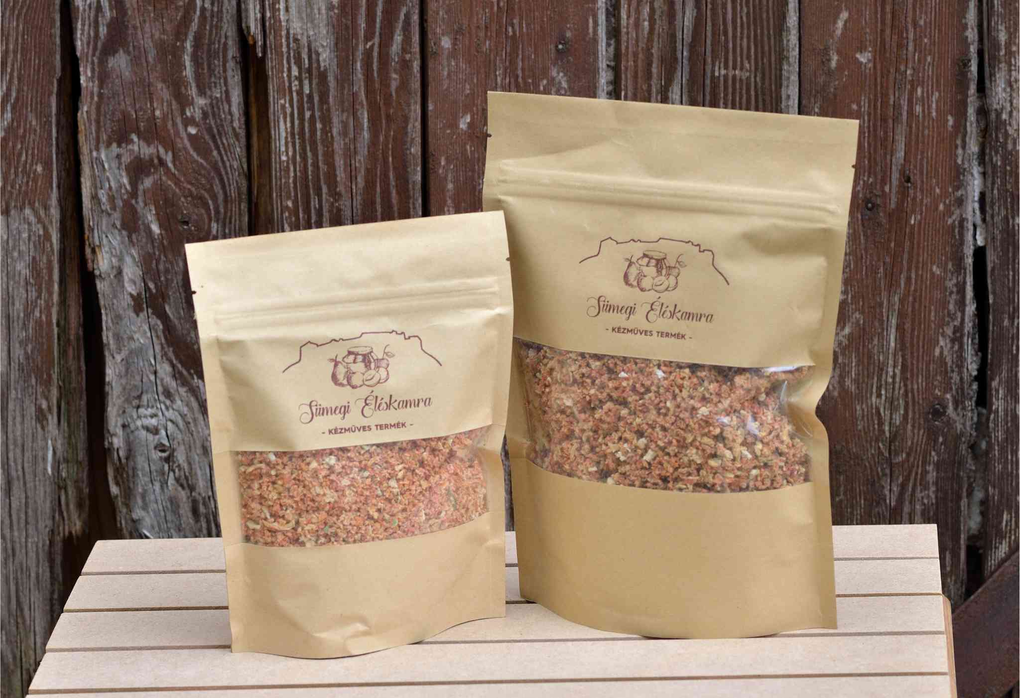 Használhatod levesekhez, főzelékekhez, vagy akár egy gyors rizs- vagy tésztaételhez, amikor szeretnél egy kis extra ízt. Ez nem „vegeta”, hanem annál sokkal több: egy kis Sümeg a konyhádban, ahol mindig kéznél van a húsleves alap. Mi is így használjuk nap mint nap.